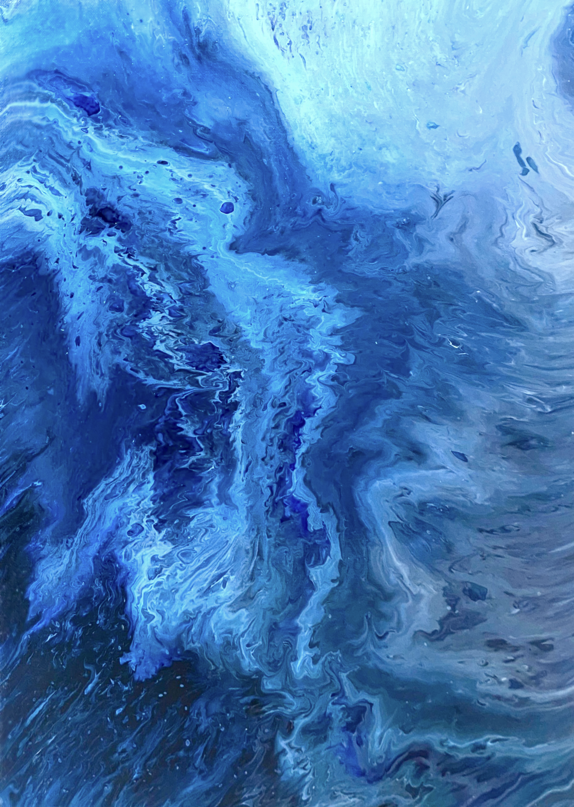 Acrylic pour painting is incredibly therapeutic. As the paint colors flood and swirl on my empty canvas, my stress and anxieties slowly melt away. I titled this piece "Coalescence" as it looks like two waves are coming together to form an explosion of color emanating from the center of the canvas. I like to think in a way that this piece can serve as a reminder that seemingly opposing forces can come together and form something more meaningful than either part alone.